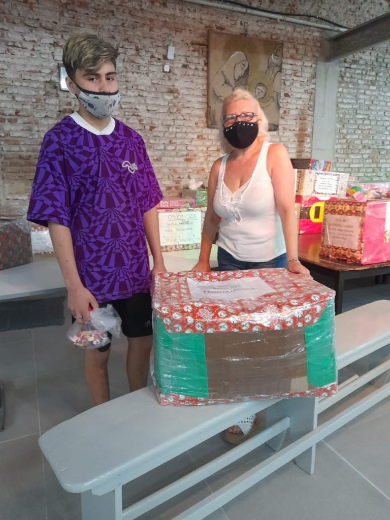 Miembros del Comedor y del Círculo retiraron las cajas para distribuirlas entre las familias de esa localidad, participando así de un gran gesto de amor donde dos familias se unen para compartir la Nochebuena.